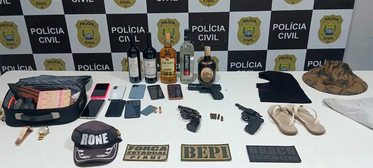 Durante as diligências, diversos objetos subtraídos foram recuperados, entre eles a arma de fogo da vítima, aparelhos celulares, cartões e outros pertences pessoais. Também foram apreendidas vestimentas utilizadas pelos suspeitos durante o crime, como balaclava e peças de roupa compatíveis com as observadas nas imagens de segurança.