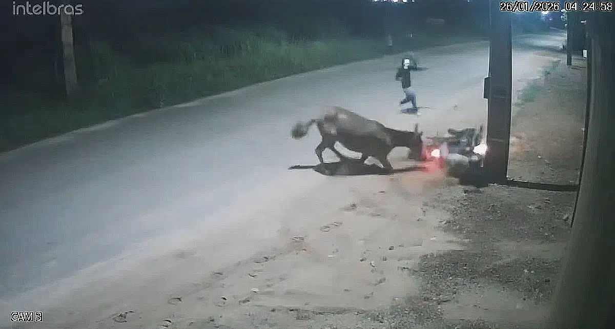 Assaltantes usam jumento para derrubar motociclista e roubar moto veja o vídeo