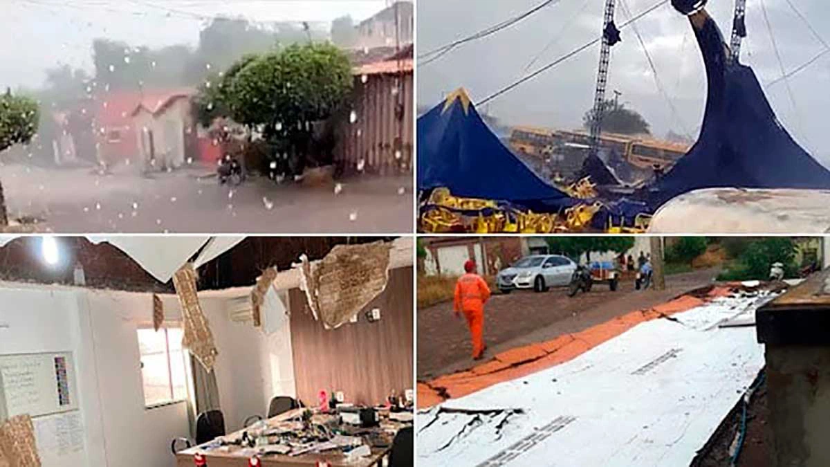 Em imagens registradas por moradores locais, é possível ver um cenário de destruição deixado pela ventania, com muros e telhados de casas derrubados, queda de postes de iluminação e até uma lona de circo que foi arrancada pelos ventos fortes. Uma estimativa feita por um climatologista aponta que os ventos possam ter atingido uma velocidade igual ou superior a 80 km/h.