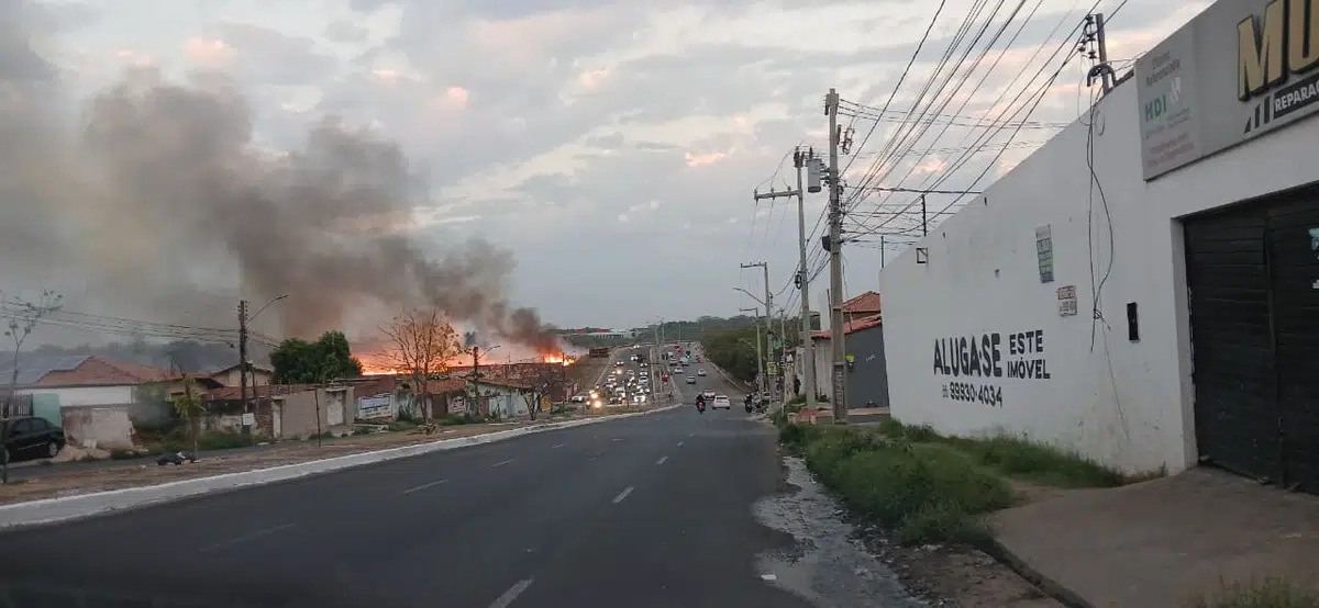 Incêndio de grandes proporções atinge terreno próximo a Ponte Anselmo Dias