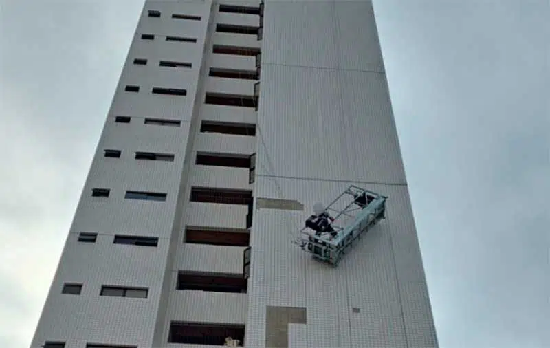 Quando Uma equipe do Corpo de Bombeiros chegou ao local constatou que o próprio trabalhador conseguiu nivelar a plataforma e descer em segurança, não sendo necessária a realização de intervenção direta por parte dos bombeiros militares.