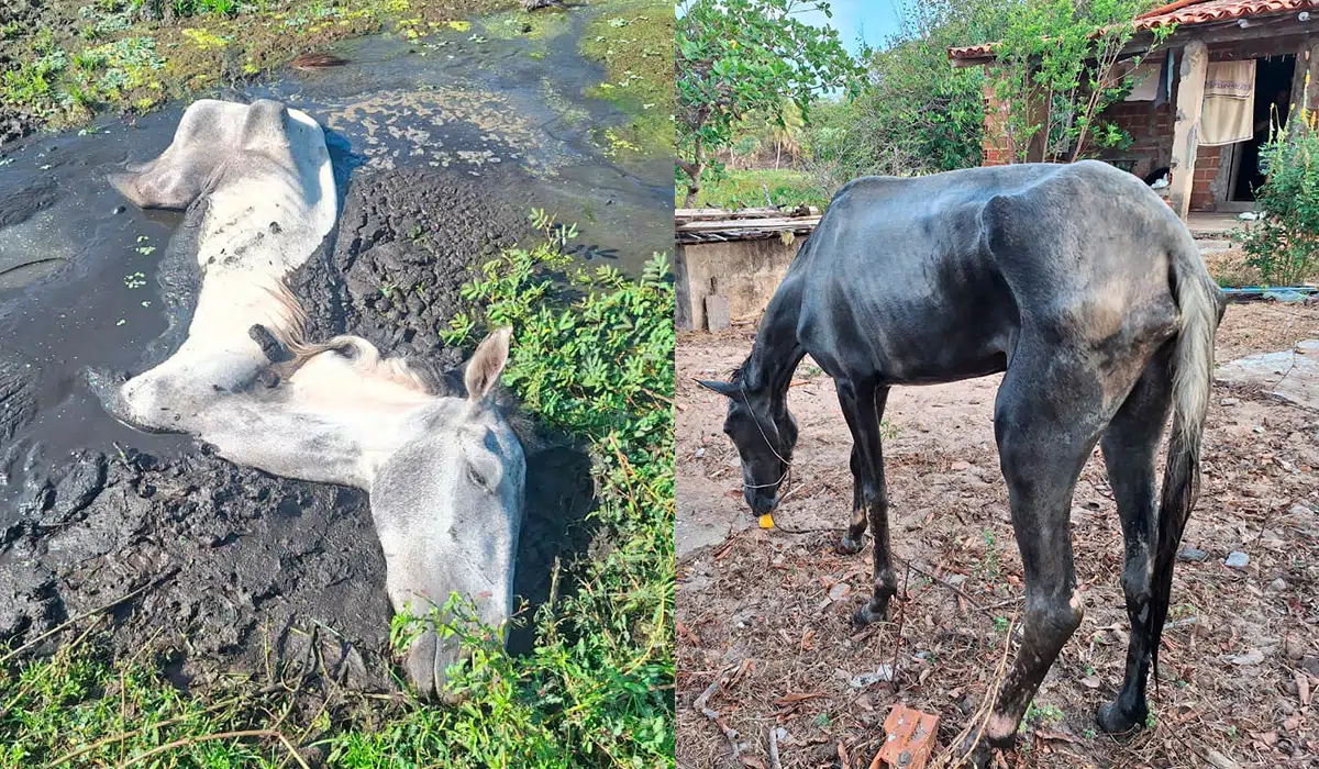 Diante da situação, os policiais se deslocaram até o local e, com o auxílio de moradores, utilizaram cordas e pás para retirar o cavalo da lagoa de forma segura. A ação exigiu cuidado para evitar ferimentos no animal durante o resgate.