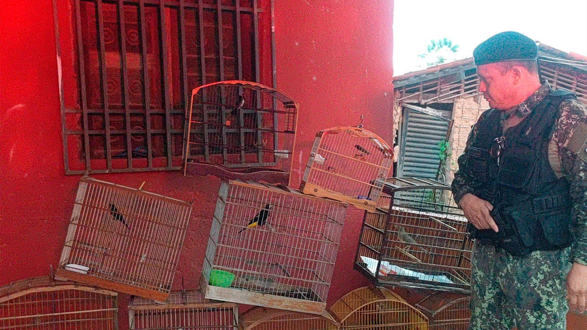 “Após a gente concluir a ocorrência do macaco, a gente verificou na casa ao lado, no vizinho, algumas gaiolas e quando a gente foi lá abordar o proprietário da casa, a gente realmente verificou que ele tinha 10 gaiolas com 10 pássaros silvestres sem nenhuma autorização do Instituto Brasileiro de Meio Ambiente.