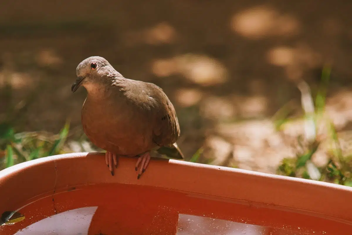 Os pássaros precisam de água limpa diariamente, tanto para beber quanto para se refrescar. A SEMARCO recomenda deixar um potinho raso com água no quintal, sempre em local seguro e à sombra. Esse pequeno gesto ajuda a aliviar o calor e garante o bem-estar das aves durante a estiagem.