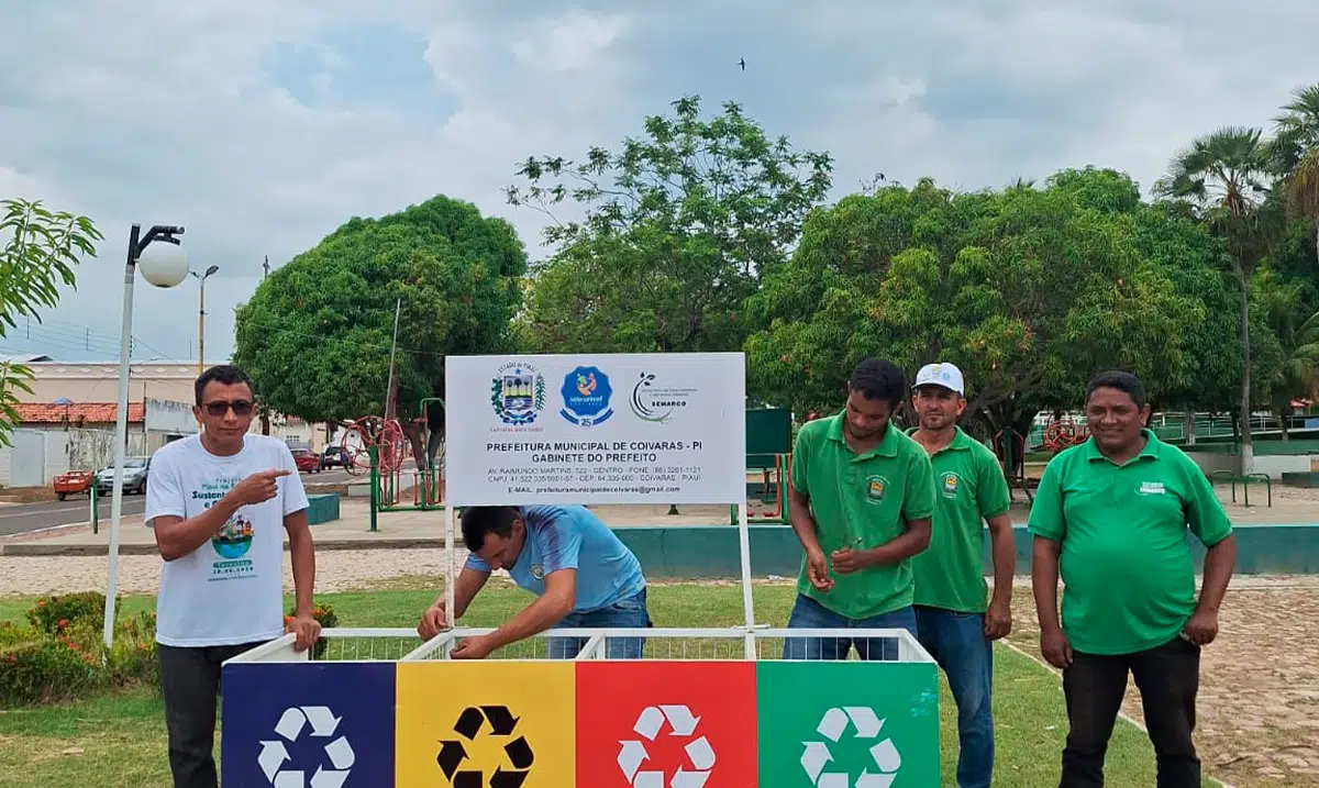 Coivaras recebe 4 novos pontos de entrega voluntária e ações de plantio de espécies nativasA Prefeitura de Coivaras, por meio da Secretaria Municipal do Meio Ambiente, realizou nesta terça-feira a entrega de quatro PEVs (Pontos de Entrega Voluntária) distribuídos em áreas estratégicas da cidade, incluindo o Centro e a comunidade Buritizinho. A iniciativa faz parte do plano municipal para aprimorar o descarte correto de resíduos e fortalecer a consciência ambiental da população.