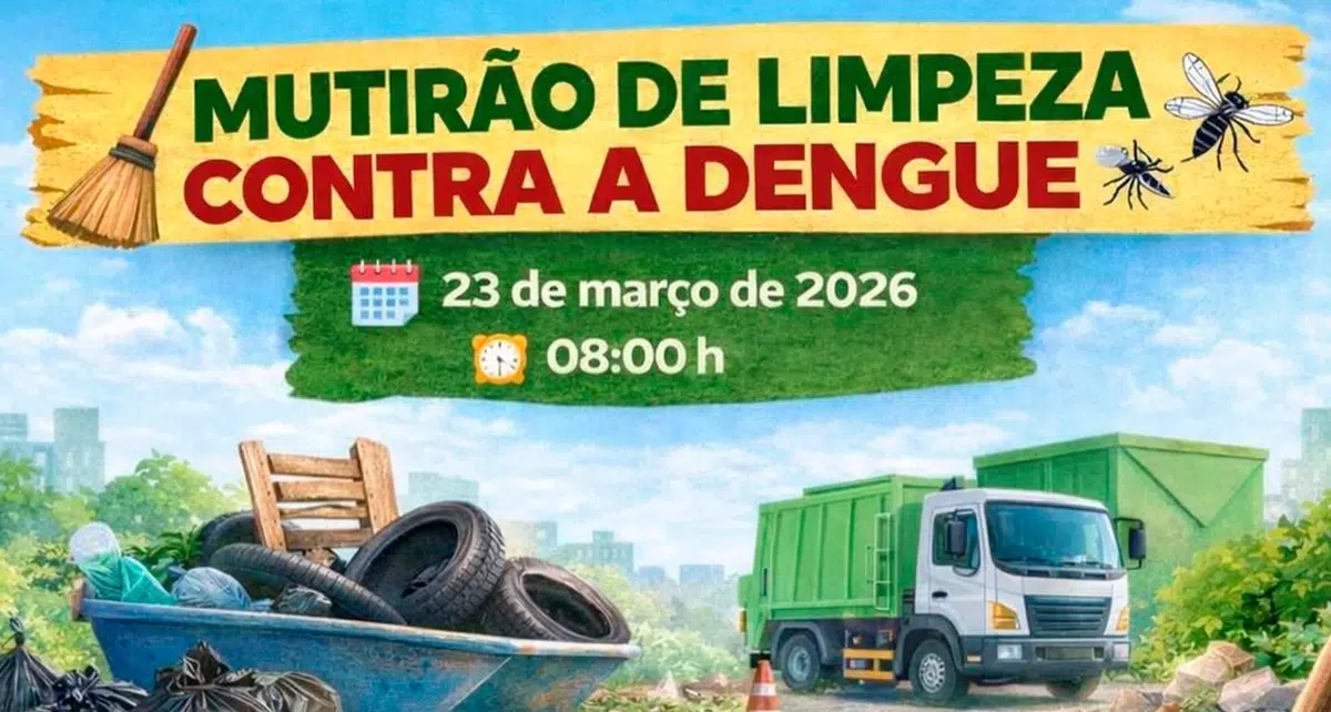 A ação está marcada para o dia 23 de março de 2026, com início às 08h, e tem como objetivo eliminar possíveis criadouros do mosquito Aedes aegypti, transmissor da dengue, zika e chikungunya.