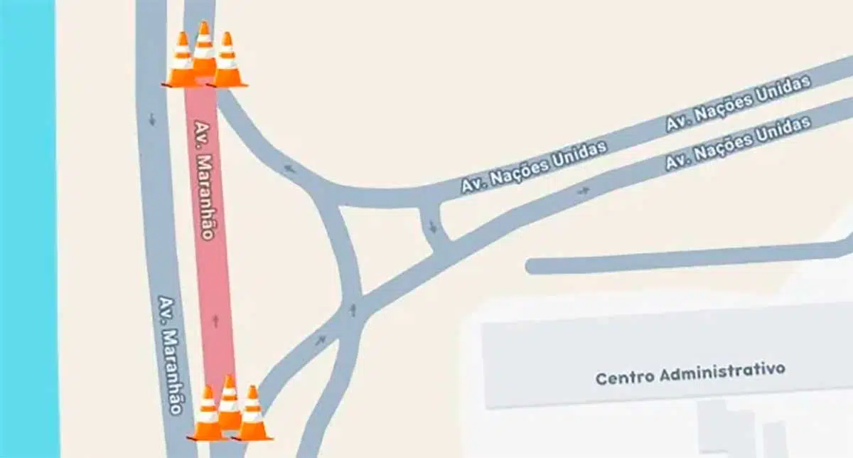 Bloqueio deverá durar cerca de três semanasUm trecho da Avenida Maranhão passará por interdição parcial a partir desta terça-feira (28), no sentido Sul–Norte, no cruzamento com a Avenida Nações Unidas. A medida foi anunciada como parte de uma intervenção para melhorar a fluidez do trânsito na região do Centro Administrativo.