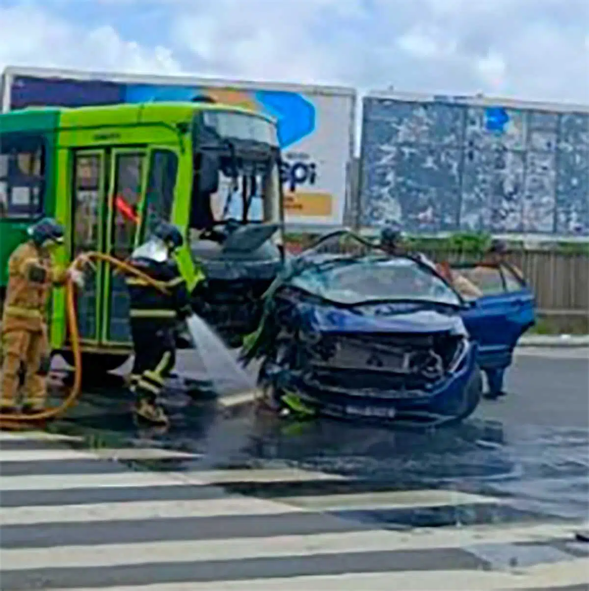 Testemunhas relataram que o carro seguia pela Avenida Miguel Rosa em alta velocidade e teria avançado o sinal vermelho no momento em que foi atingido pelo ônibus.