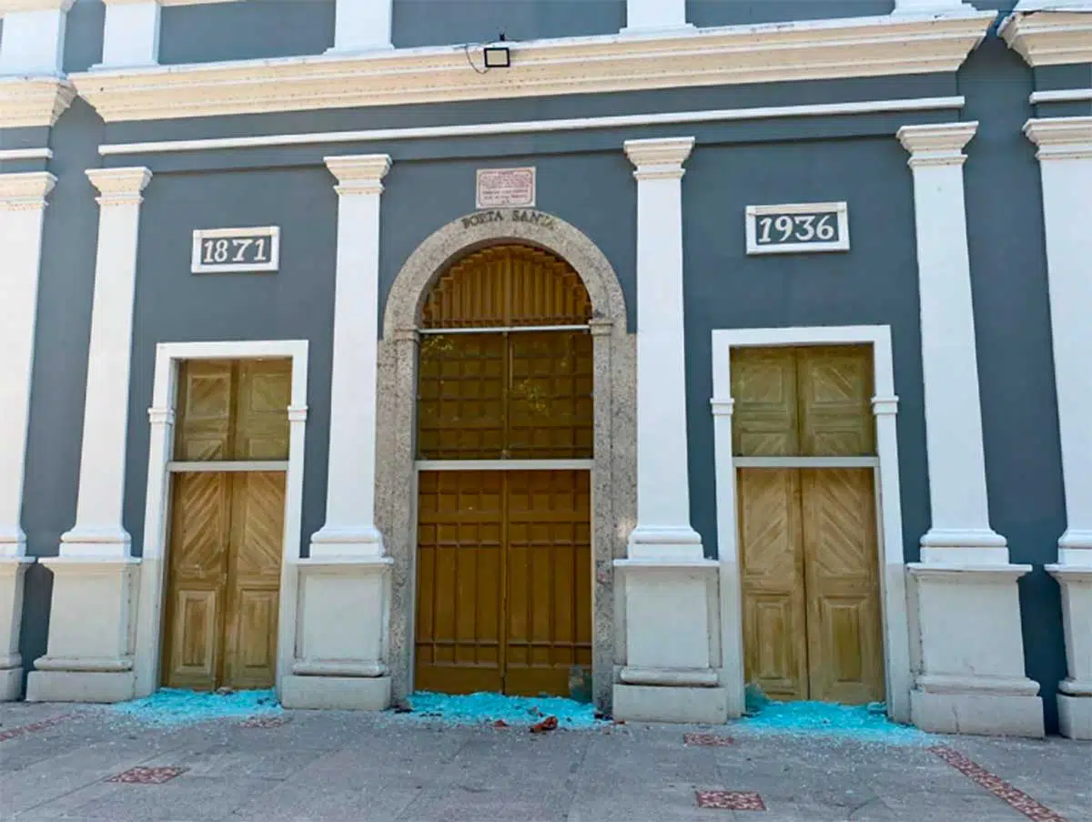 Vândalos quebram portas de vidro de Catedral no Centro de Teresina