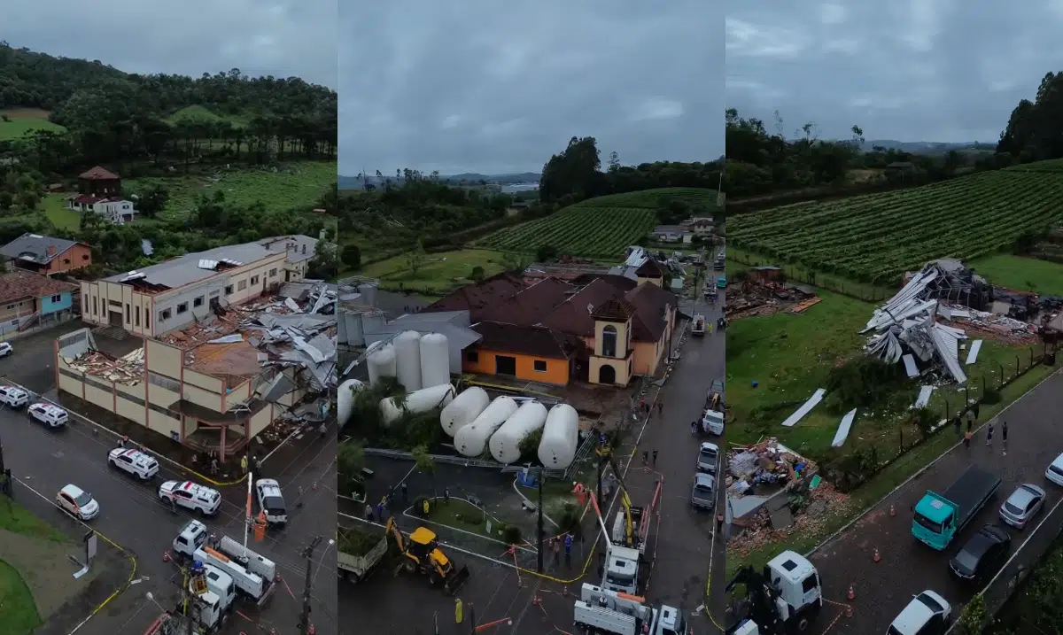 Mais de 12 cidades registram destelhamentos, quedas de árvores e falta de energiaUm forte temporal provocado pela passagem de um ciclone extratropical atingiu diversas cidades do Rio Grande do Sul na manhã desta terça-feira (9). As rajadas de vento, que começaram ainda na segunda-feira (8), destelharam casas e uma igreja, derrubaram pipas de vinho e destruíram um ginásio em Flores da Cunha, município mais afetado pelo fenômeno.