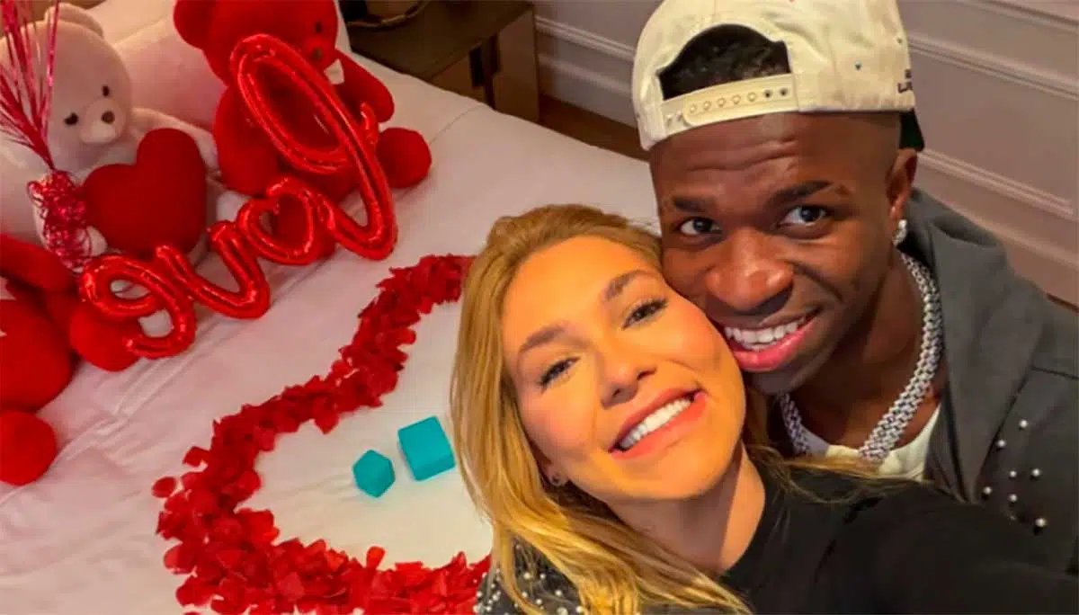 o pedido de namoro aconteceu em Madri, pouco depois de uma viagem a MônacoNa manhã de terça-feira (28), o jogador Vinícius Júnior anunciou publicamente o namoro com a influenciadora Virgínia Fonseca, através de uma publicação no Instagram em que os dois aparecem juntos em um quarto decorado com pétalas de rosas, balões de «love», ursinhos de pelúcia e alianças. Na legenda, o jogador escreveu “V❤️V”, fazendo alusão às iniciais de ambos.