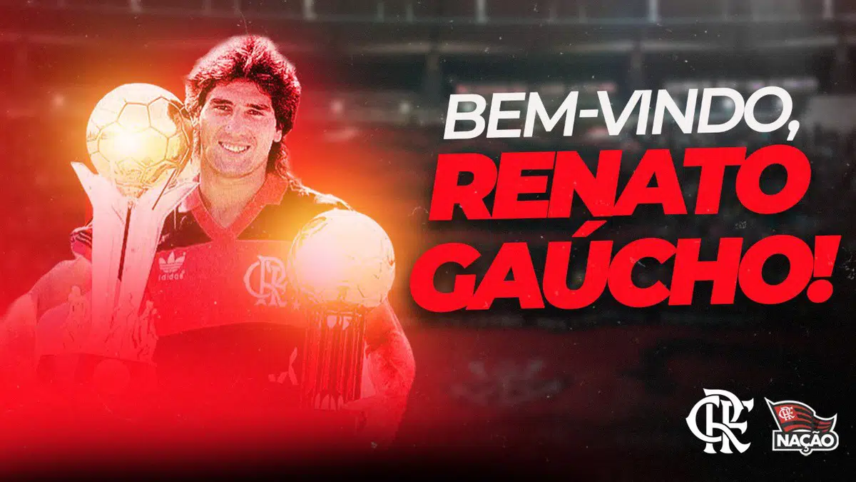 Renato Gaúcho chega a acordo e é o novo técnico do FlamengoO Flamengo fez o anúncio em suas redes sociais no início da noite deste sábado, de Renato com a camisa rubro-negra em seus tempos de jogador.
