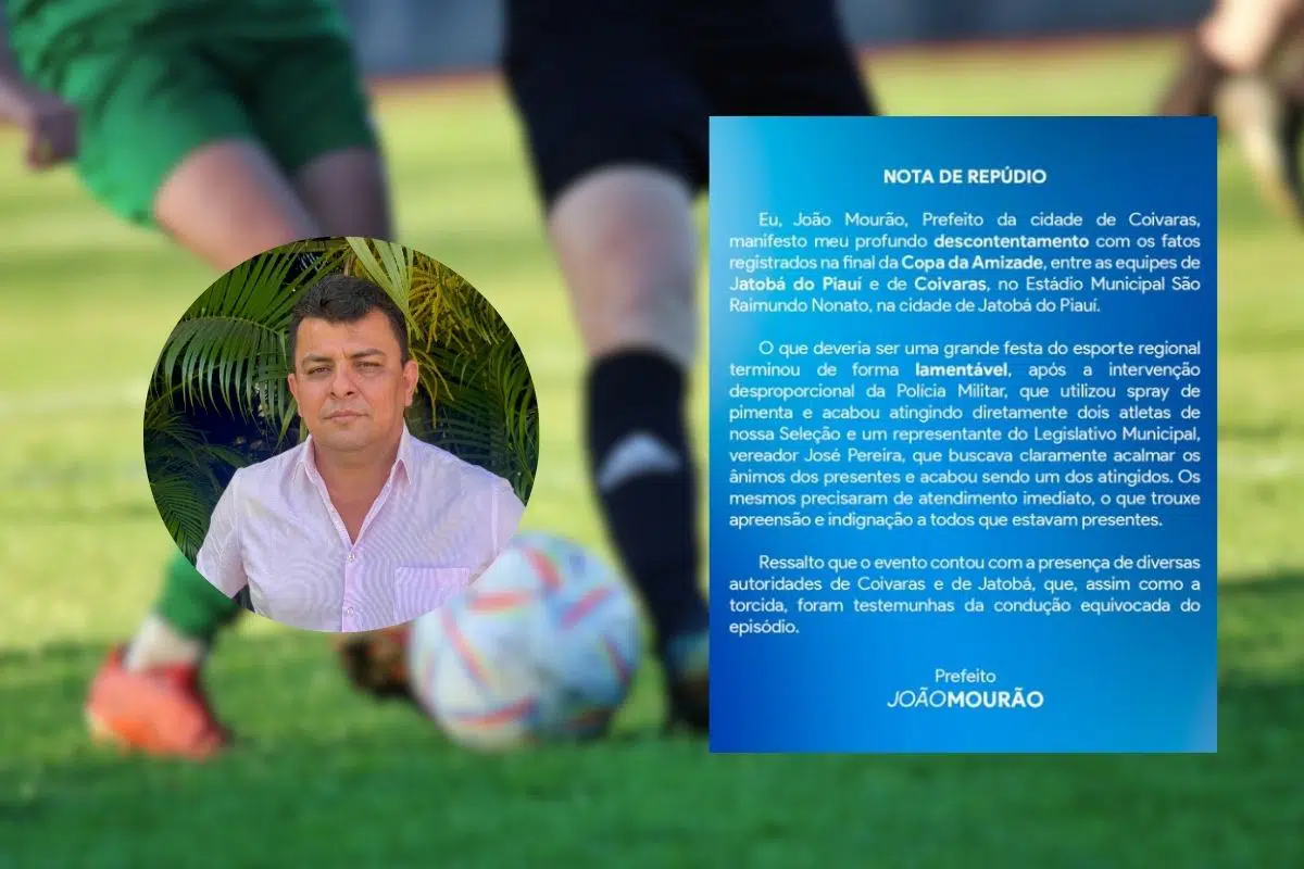 João Mourão critica uso de spray de pimenta em atletas e autoridadesO prefeito de Coivaras, João Mourão, manifestou repúdio aos acontecimentos registrados na final da Copa da Amizade, realizada entre as equipes de Jatobá do Piauí e Coivaras, no Estádio Municipal São Raimundo Nonato, em Jatobá do Piauí.