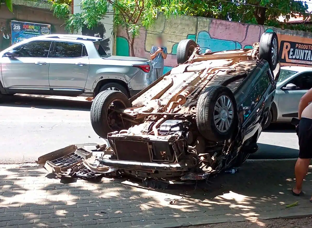 Um carro ficou de cabeça para baixo após colidir com uma caminhonete Toro, na tarde de domingo 29. O acidente ocorreu na avenida Deputado Ulisses Guimarães, próximo a Maternidade do Promorar, na zona Sul de Teresina.