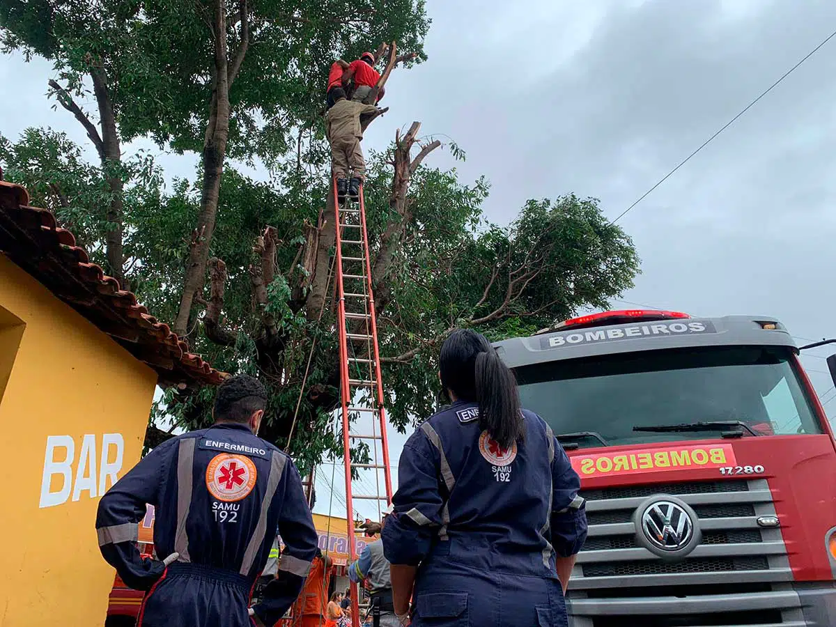 Um vídeo gravado por populares mostra o momento em que o bombeiro sobe na árvore para resgatar o jovem. A população que lotou a rua para acompanhar a operação, comemorou o sucesso do resgate.