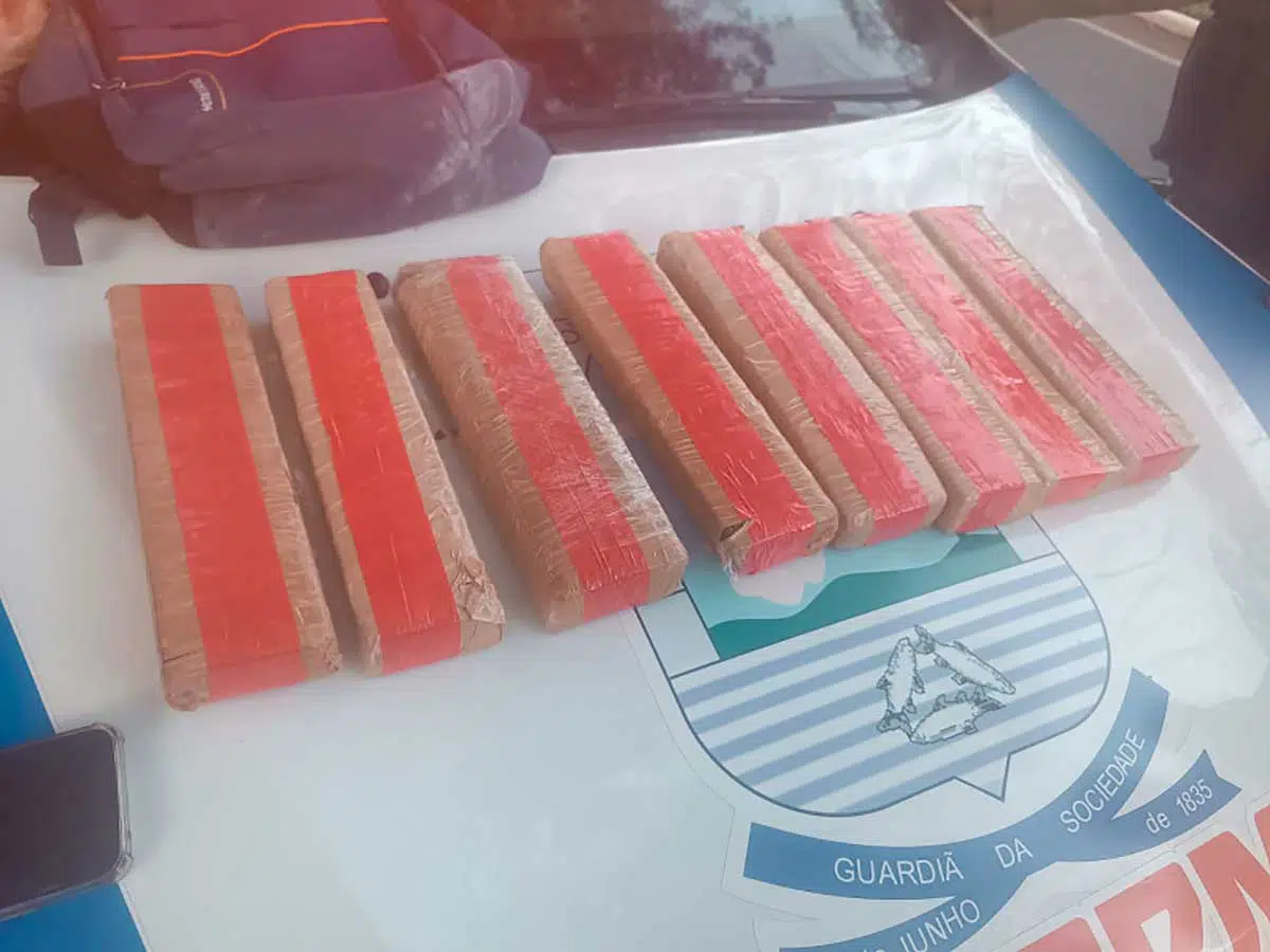 Na situação, dois indivíduos andavam em uma motocicleta e ao ver a barreira, se desfizeram de uma bolsa e fugiram. Os policiais perceberam e foram ao local verificar e localizaram dentro da bolsa 8 tabletes de maconha. As equipes ainda realizaram diligências, mas os suspeitos conseguiram se evadir.