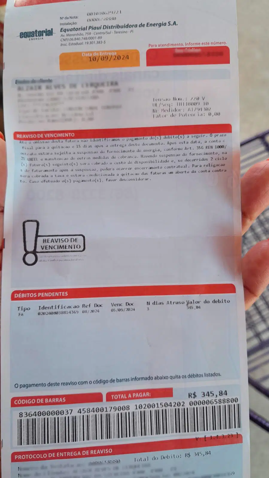 Felizmente a vítima notou a tempo e não realizou o pagamento da faturaUma professora, que não quis se identificar, informou ter sido vítima de uma tentativa de golpe após deixar de pagar uma fatura da Equatorial Energia Distribuição Piauí, em dias.