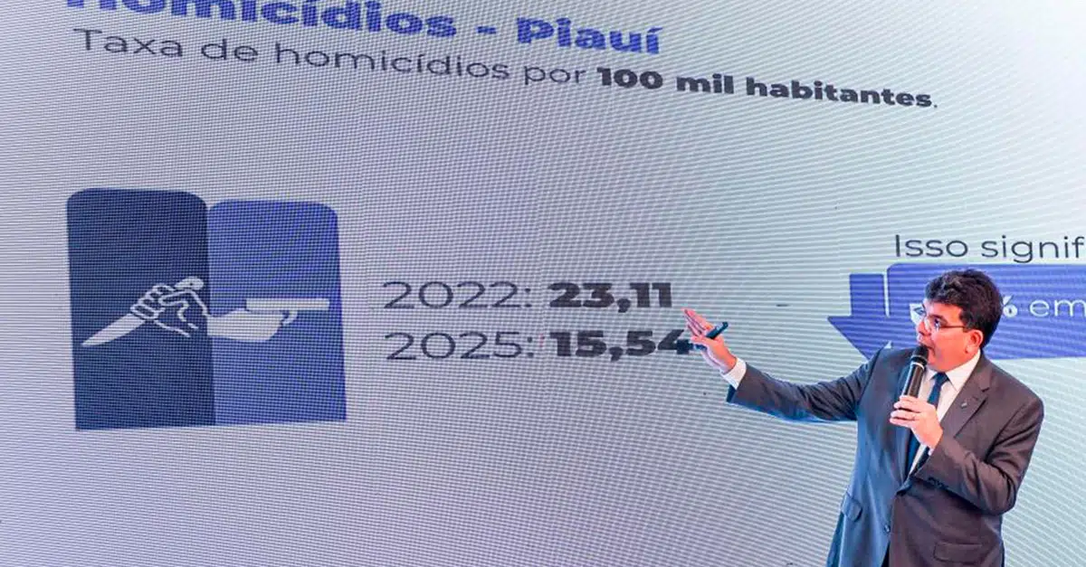 Entre 2022 e 2025, o número absoluto de homicídios no Piauí caiu 30%, passando de 756 para 526 casos. A taxa por 100 mil habitantes recuou 33%. Em Teresina, a redução foi de 41,5% nos registros e 44% na taxa populacional.
