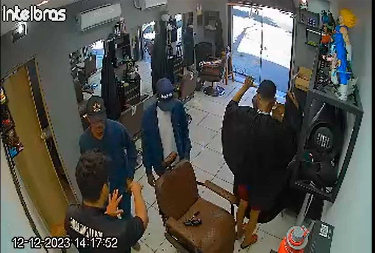 Pelas imagens é possível notar que a dupla de criminosos armados invade o local por volta das 14h da tarde desta terça-feira 12, uma vez dentro do local eles subtraem os pertences do barbeiro em seguida os do cliente, é possível também ouvir o diálogo entre eles. Ao deixar o local os criminosos ainda levam a moto da vítima que observa perplexa a ação dos meliantes.