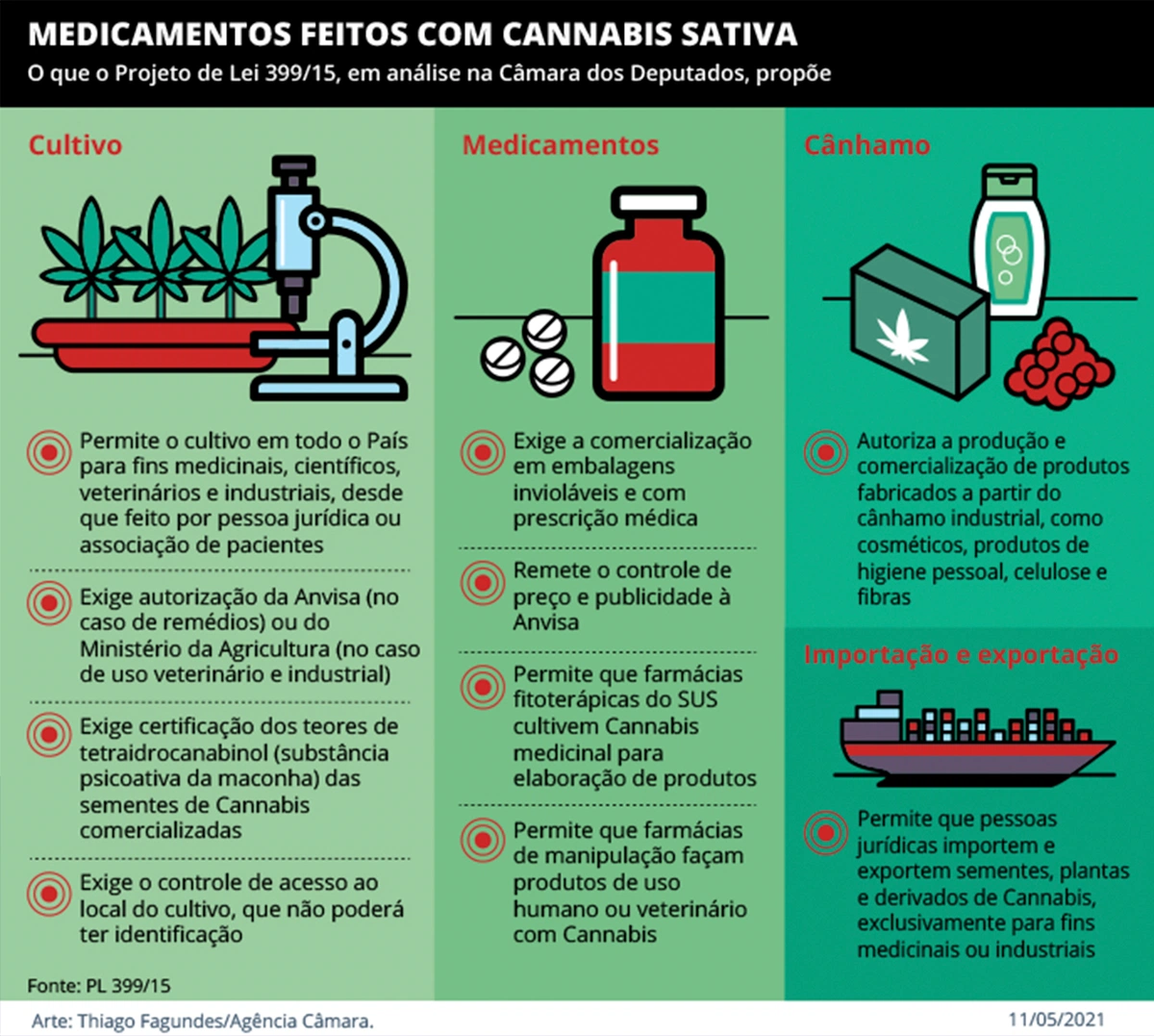 Já os parlamentares favoráveis ao texto avaliaram que o cultivo local controlado deverá baixar o custo dos tratamentos para pacientes e governos. “O SUS não precisa gastar R$ 2,8 mil em vez de R$ 200”, disse Alex Manente (Cidadania-SP), comparando produto comercial hoje nas farmácias a atuais itens alternativos.