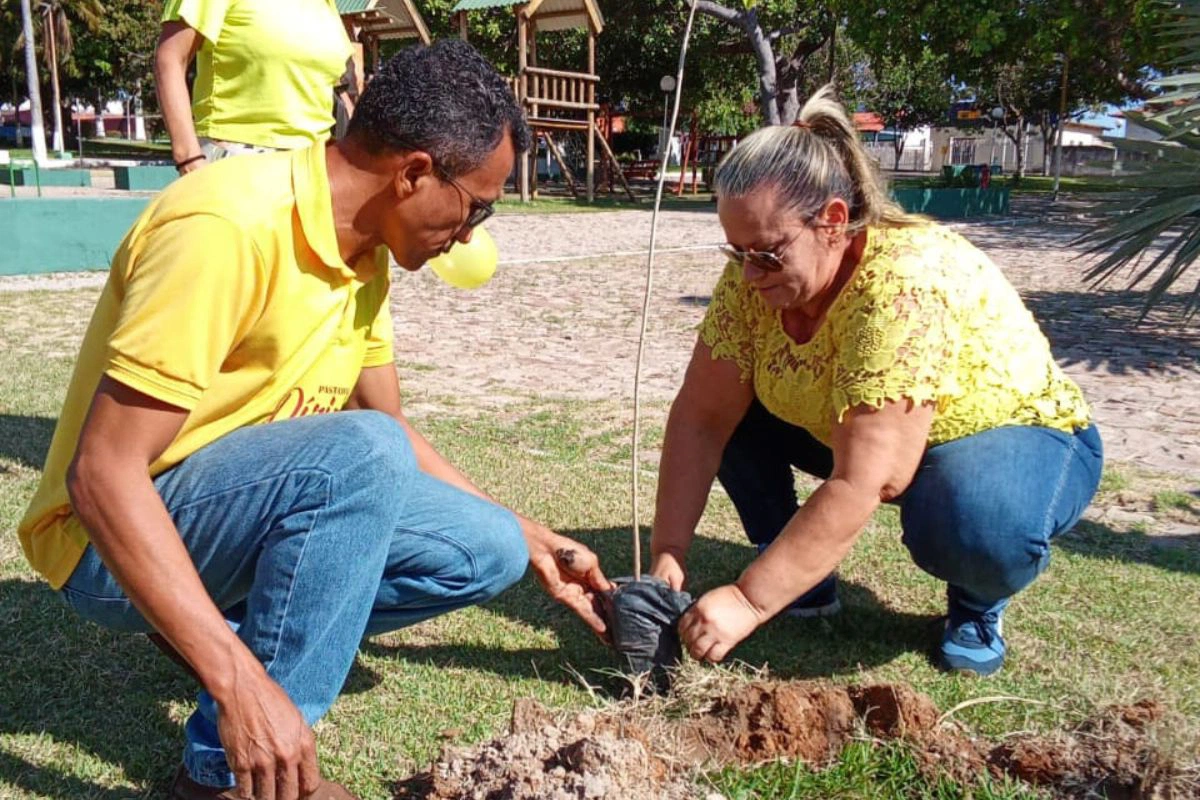 Em Coivaras plantio de ipês amarelos na caminhada do Setembro Amarelo simbolizando a vida